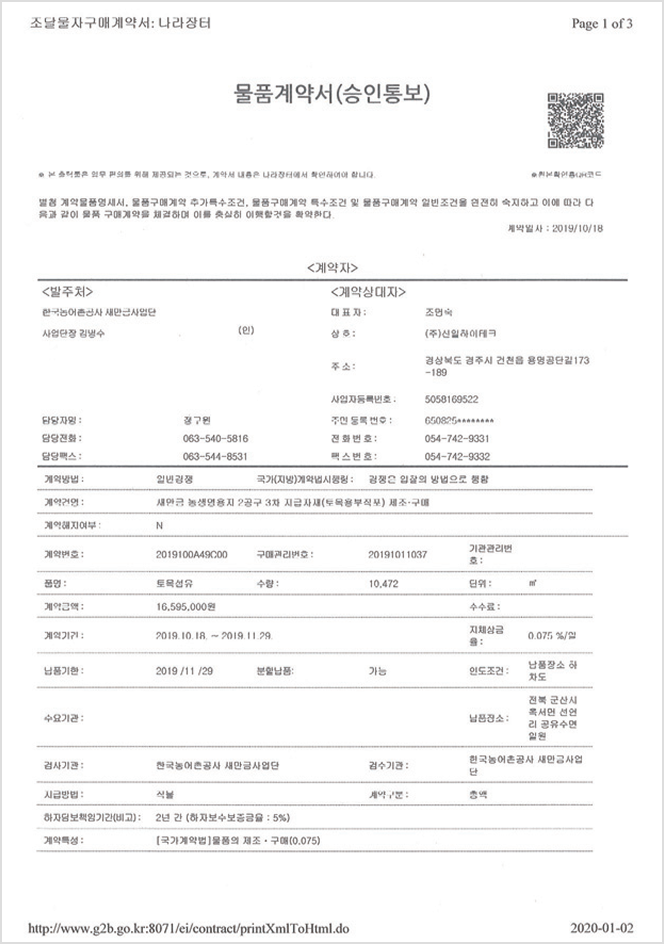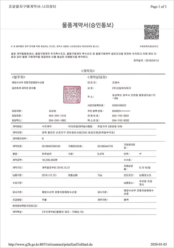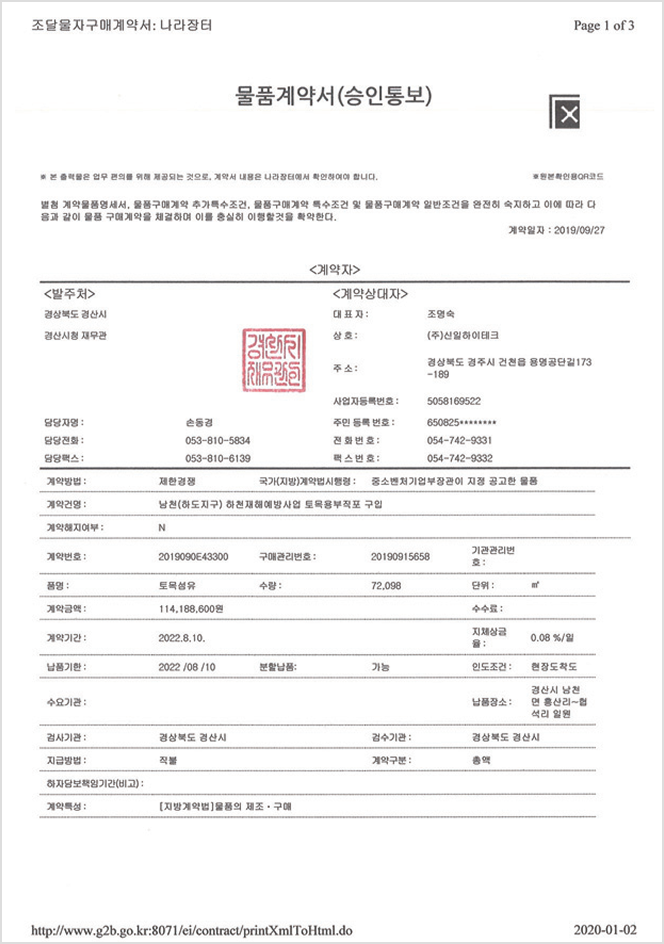 강도, 신도 및 물리적 수리적 특성을 토목공사 시 적합한 조건으로 형성하게 함으로서 정확한 제조 공정을 거쳐
