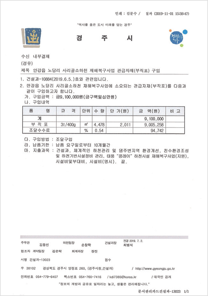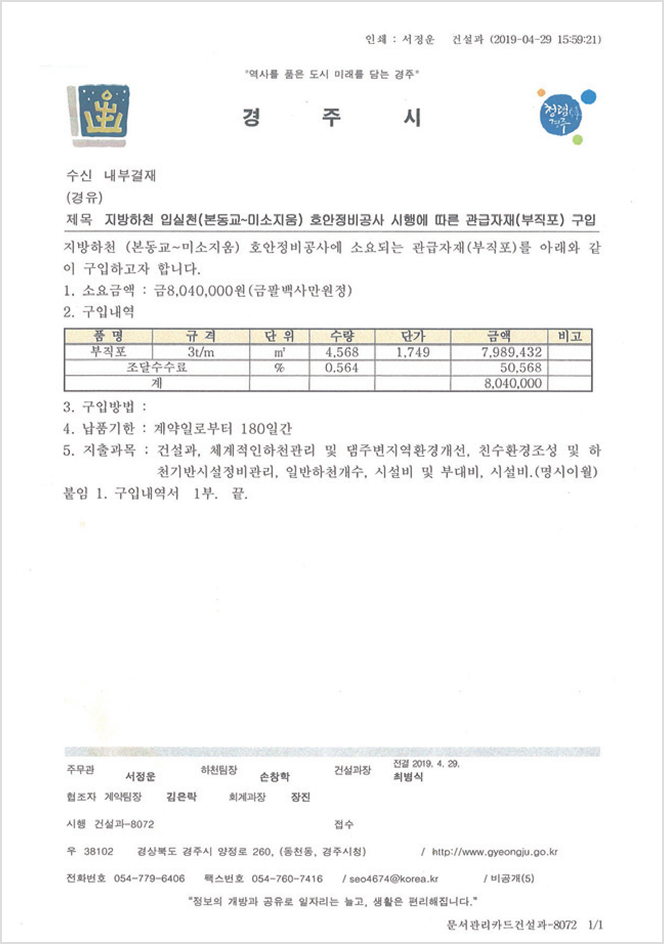 경주시 관급자재 제공
