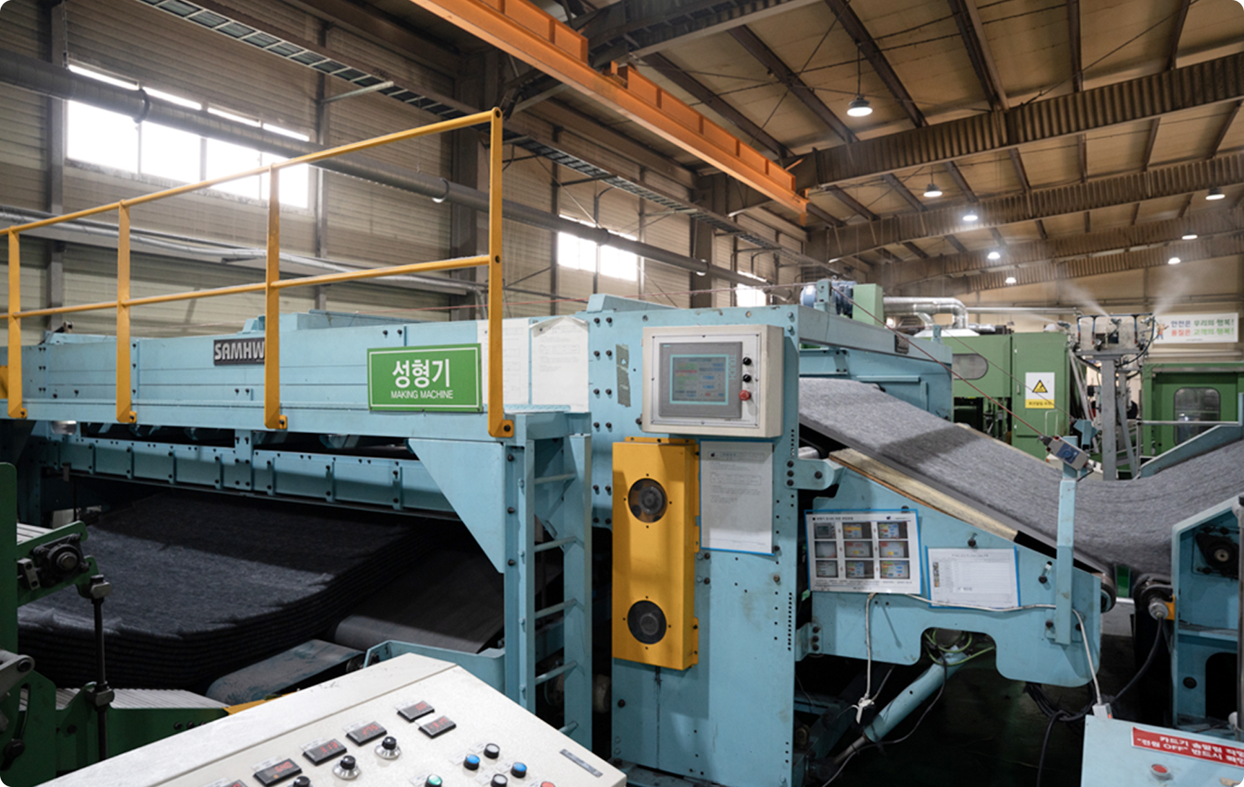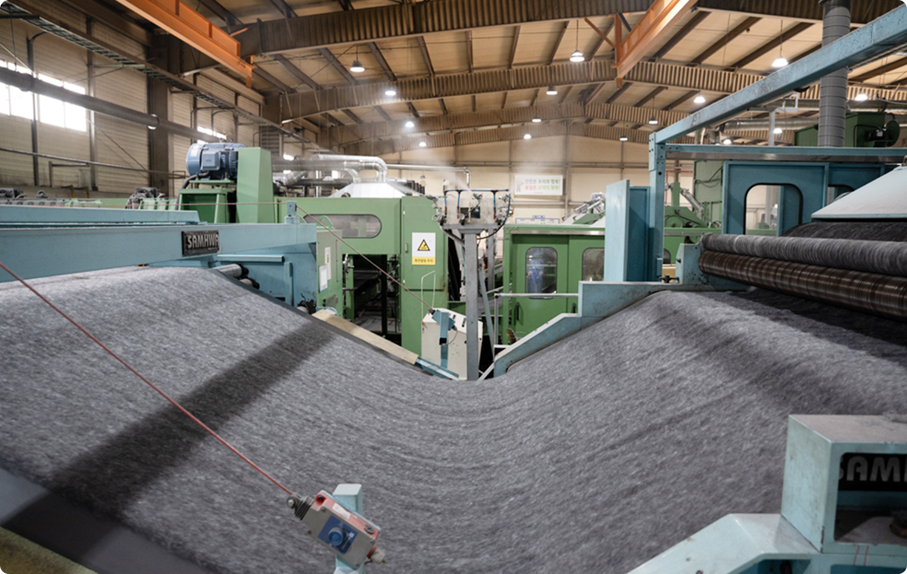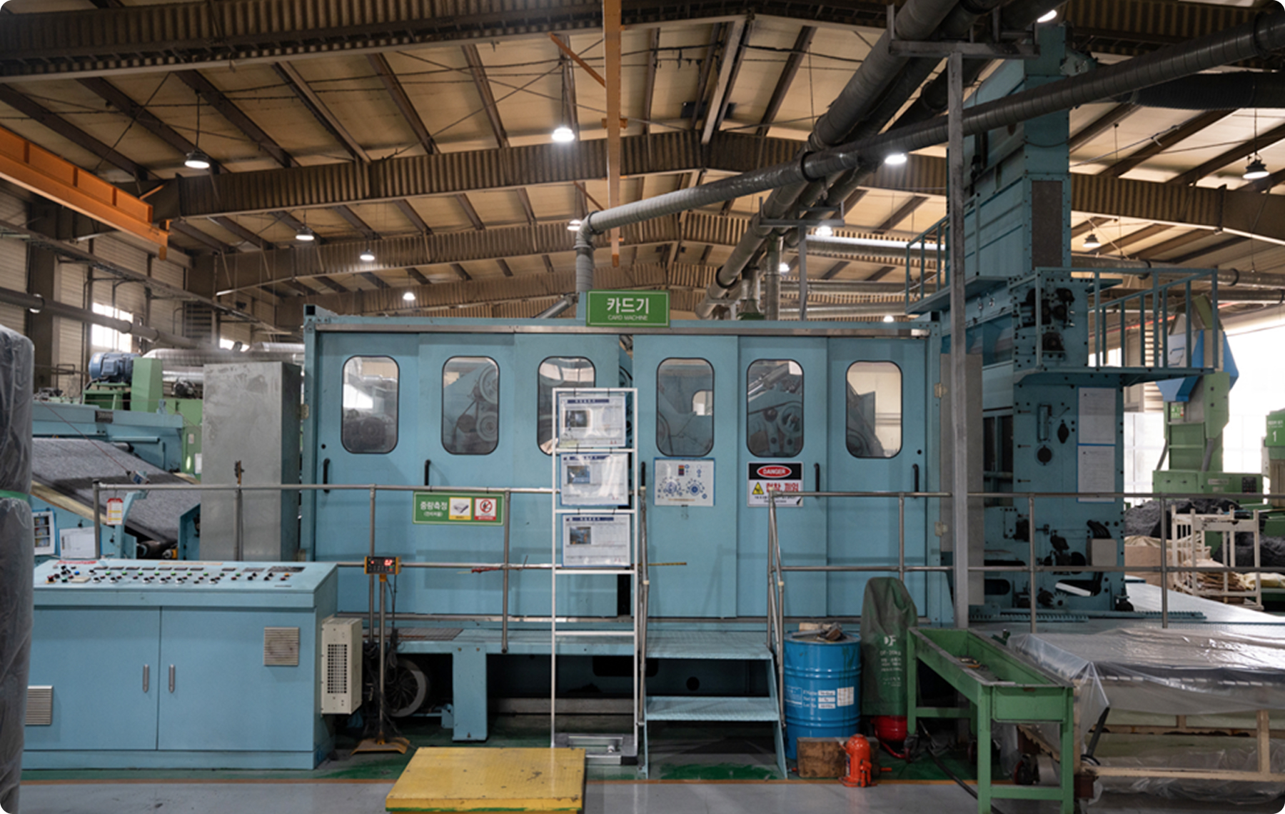단섬유의 FIBER를 개면한 후 WEB을 적층 후